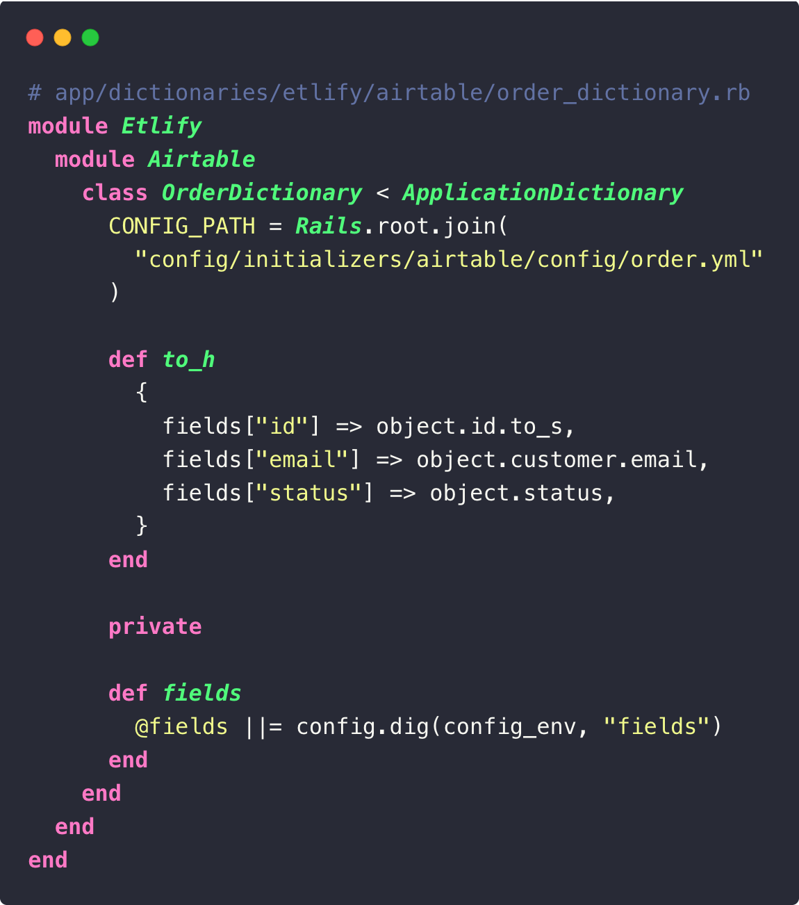 Les clés du Hash retourné par to_h sont les field IDs Airtable, pas vos noms de colonnes. Un serializer par model synchronisé.